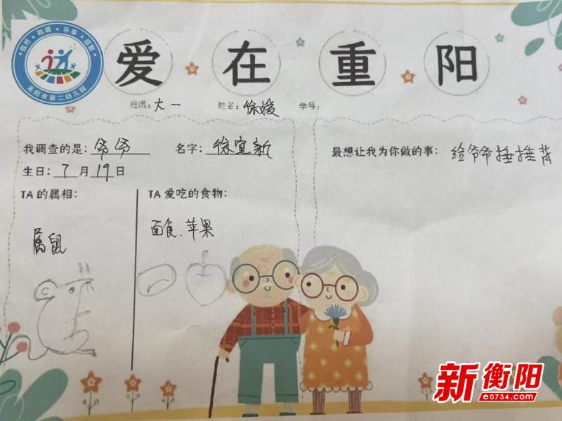 在民俗观念中“九”在数字中是最大数,不仅有长久长寿的含意,还寄托着人们对老人健康长寿的祝福。在重阳节到来之际,孩子们开启了一场“小调查。