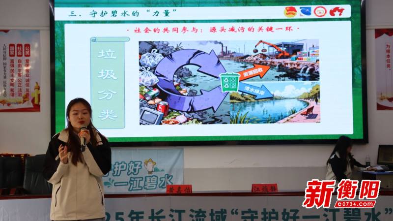 宣讲环节亮点纷呈,气氛热烈。宣讲团成员们化身“环保老师”,摒弃传统灌输,巧妙运用多媒体课件、趣味问答、情景模拟和动手小实验等多种形式,围绕水资源珍贵性、生活节水小妙招、垃圾分类重要性及祁东县母亲河——白河的保护现状等内容进行了深入浅出的讲解。
