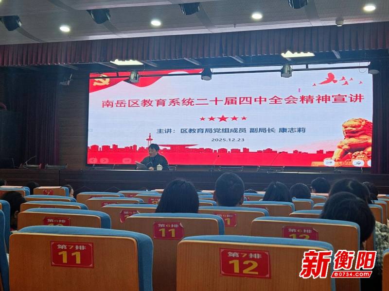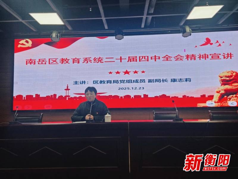 衡阳新闻网讯 通讯员文丽贤报道 12月23日上午,南岳区教育局党组成员、副局长康志莉深入区万福小学,在多功能报告厅开展党的二十届四中全会精神专题宣讲。学校全体党员、教师代表及高年级学生代表共约200人参加了学习。