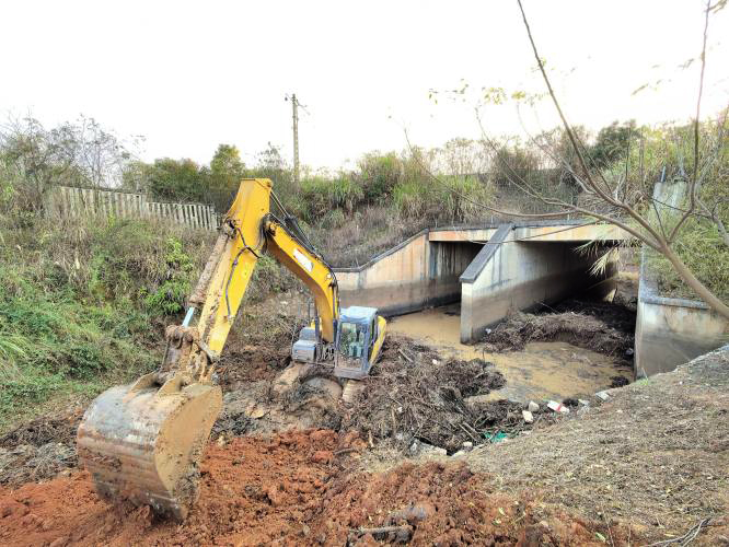 在龙溪桥灌区的渠道旁,挖掘机铁臂挥舞,将淤积的泥土和杂物连根挖起;运输车辆来回穿梭,把清理出的淤泥及时转运;身着迷彩服或工装的工作人员手持锄头、铁锹、镰刀,在渠道内外坡挥汗如雨——有的砍除丛生的灌木杂草,有的疏浚堵塞的涵洞,有的平整渠道边坡。从长渠到涵洞,从机械轰鸣到人工协作,处处呈现出干群同心、攻坚克难的生动场景。管理所全员上阵,分工明确,协同高效,确保每一段渠道都清理到位。