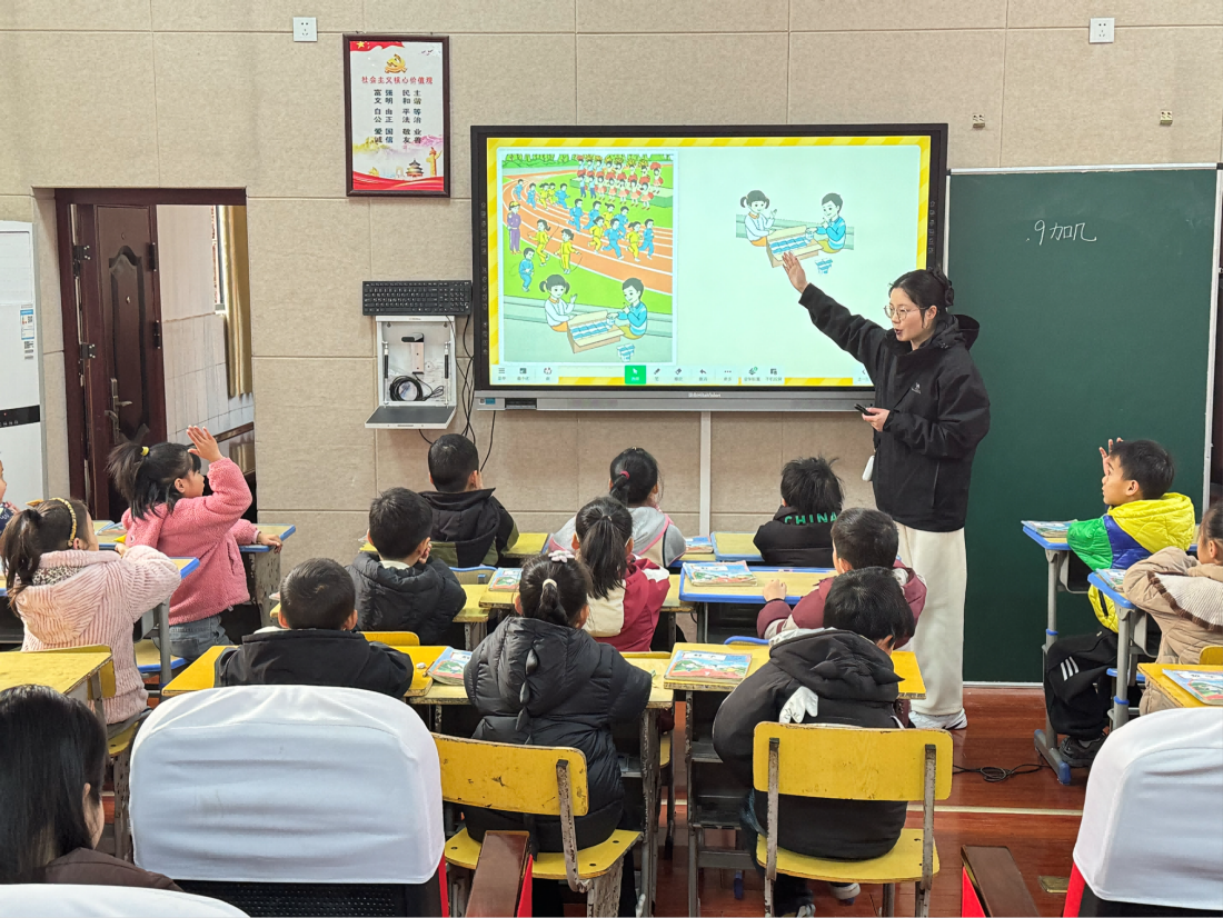 活动首先呈现了三节精心准备的研讨课。谢老师执教一年级《9加几》。她通过趣味游戏导入,巧妙创设生活情境,引导学生通过动手操作、自主探究,深刻理解“凑十法”的算理,课堂氛围活跃,学生在直观体验中轻松掌握了进位加法的关键方法,为后续学习奠定了坚实基础。