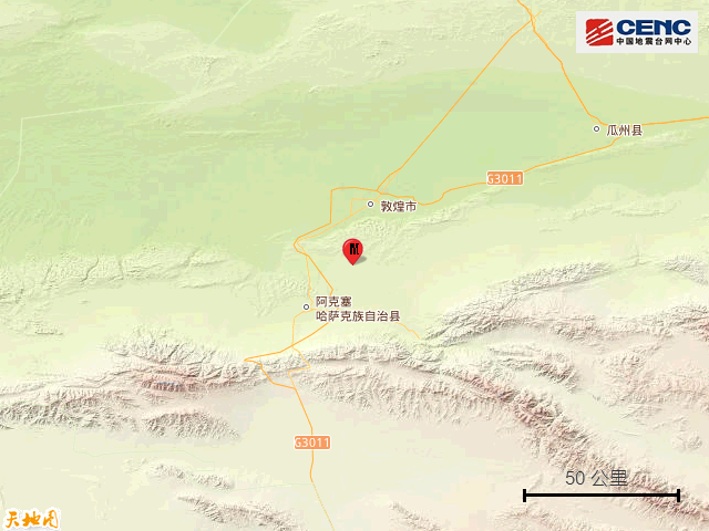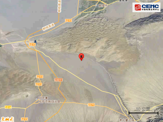 甘肃酒泉市敦煌市发生3.3级地震,震源深度11千米