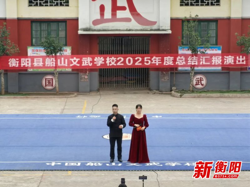 衡阳新闻网讯 通讯员颜香玉报道 1月16日,衡阳县船山文武学校举办了以 “文武兼修展风采,砥砺奋进谱新篇”为主题的年度总结汇报演出。活动通过会议总结与文艺展演结合,全面展示了学校在文化教育、武术传承及学生综合素质培养方面的成果。本次活动由副校长王通、学生陈康杰和夏雪联袂主持。他们用青春的活力、出色的口才和专业的素养,为演出的成功保驾护航,成为舞台上一道亮丽的风景线。