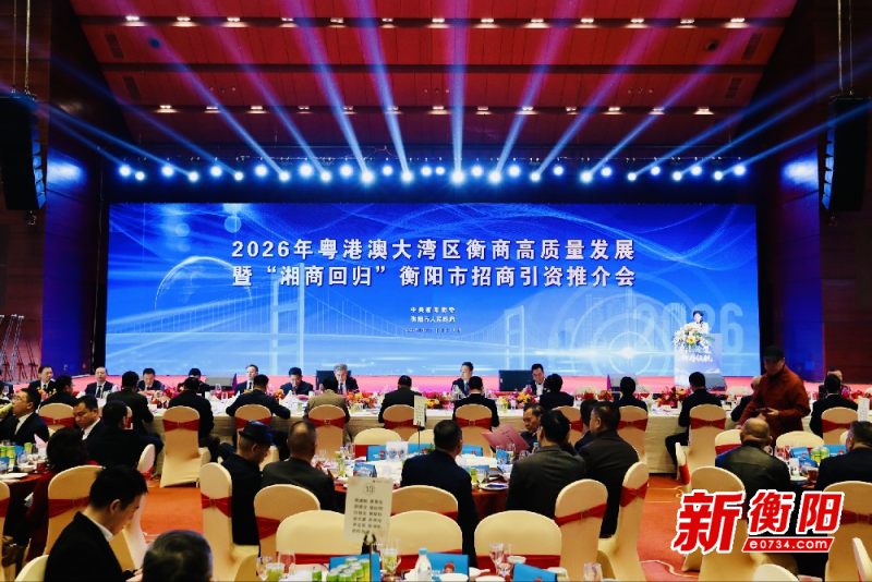 衡阳新闻网讯 记者程聪报道 1月31日,由衡阳市委、市政府主办,市政府驻广(深)办事处、广东省湖南衡阳商会承办的2026年粤港澳大湾区衡商高质量发展暨 "湘商回归" 衡阳市招商引资推介会在广州市举行,千余名大湾区衡商出席,共话衡阳高质量发展。受市委书记朱健委托,市委副书记、市长刘中杰出席并向广大在粤衡商发出投资家乡、建设家乡的诚挚邀请。