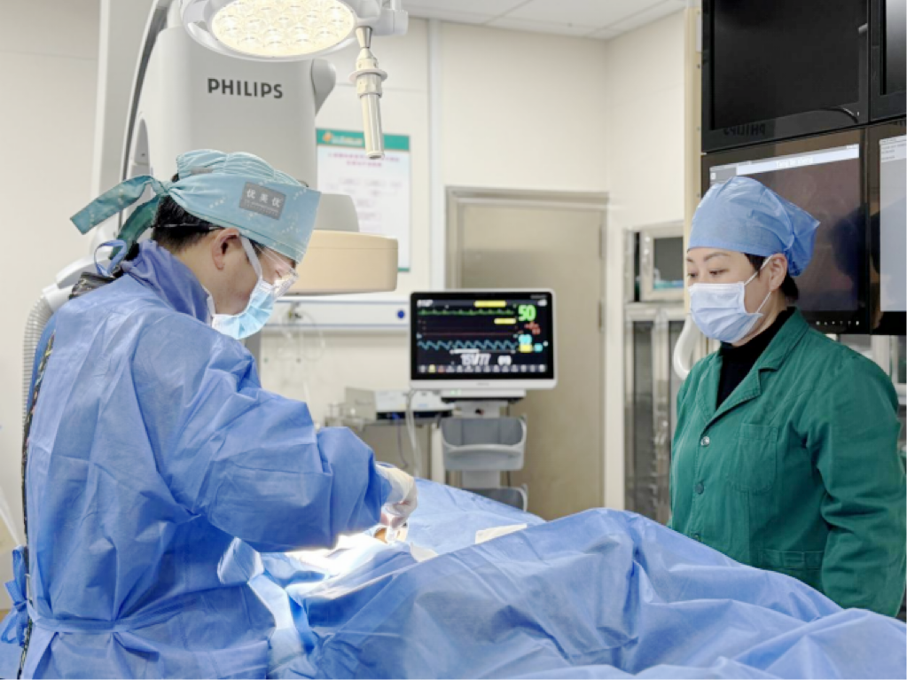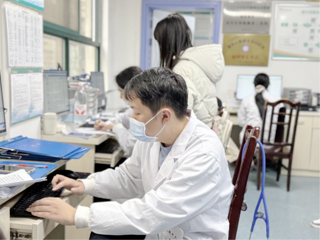 人员极度短缺、救治任务繁重,是这个春节科室面临的最大考验。但没有一人退缩、没有一人抱怨。全体医护人员迎难而上、主动补位,充分统筹住培医师力量,师徒同心、并肩作战。作为南华大学的附属医院,这里既是救治患者的战场,也是医学人才成长的摇篮。带教老师以身作则,住培医师们在实战中褪去青涩,成为临床一线不可或缺的青春力量。他们把每一位患者的安危放在心头,坚持急病人之所急、想病人之所想,应治尽治、能收尽收,绝不因节日、因人力短缺放弃任何一位患者。从晨光微熹到夜深人静,门诊诊室里是耐心问诊的身影,病房中是细致查房的脚步,介入室里是与死神赛跑的争分夺秒。