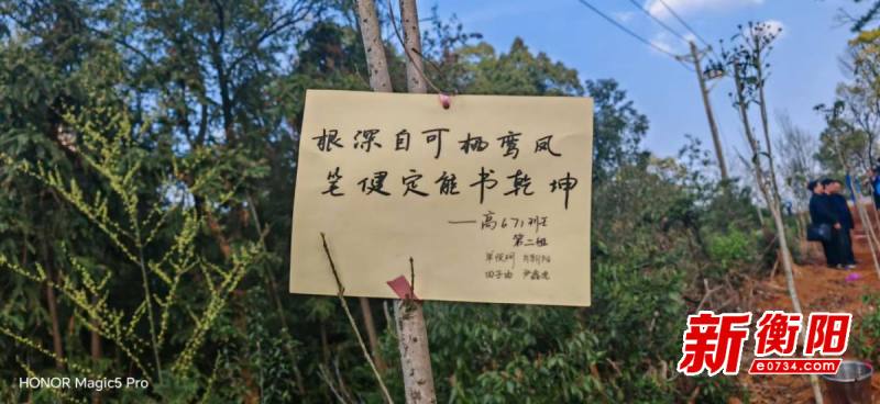 衡阳新闻网讯 通讯员刘晓鹏报道 “我们班要在后山有一片属于自己的‘桂花林’了!”3月12日下午,衡东一中后山游步道两侧格外热闹。高一671班的57名同学,在班主任刘晓鹏的带领下,开展了一场别开生面的“植此青绿,桂香满园”植树节主题活动。校长武立中、副科级纪检员李智勇等校领导也来到现场,和同学们一起种下了象征班级凝聚力的“梦想树”。