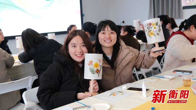 经过一个多小时的认真创作,一盏盏独具特色的压花台灯顺利完成。看着自己亲手制作的作品,大家脸上洋溢着满满的成就感与幸福感,纷纷拿起手机拍照留念,记录这份亲手创造的美好。