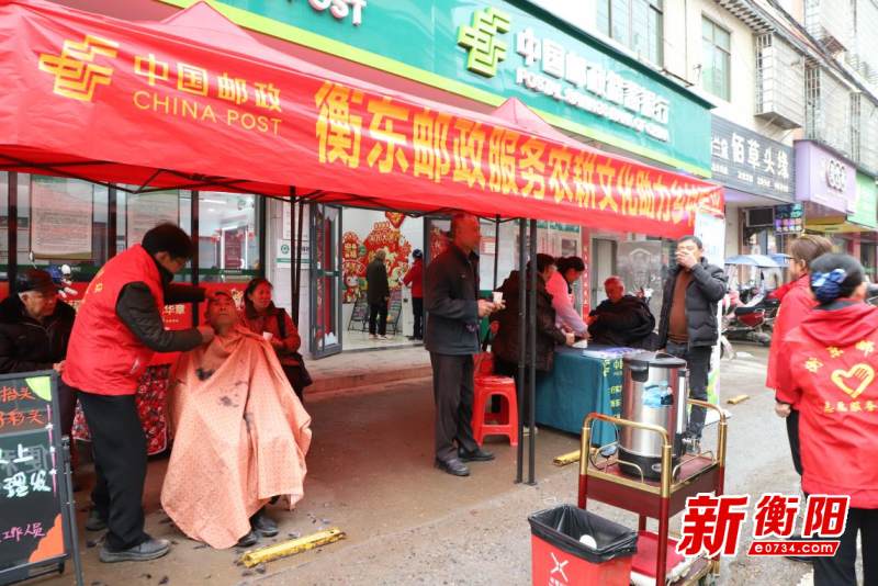 当天上午,衡东县邮政分公司组织员工在草市支局营业厅前“搭台唱戏”,玩出了新花样,让“邮政元素”与传统民俗相遇,成为草市古镇集市上一抹特别抢眼的绿意。该分公司设立了义务理发、健康义诊、业务宣传3个服务摊点,汇聚到草市古镇热闹的春日民俗交响曲中,展示了衡东邮政服务农耕文化助力乡村振兴的担当。