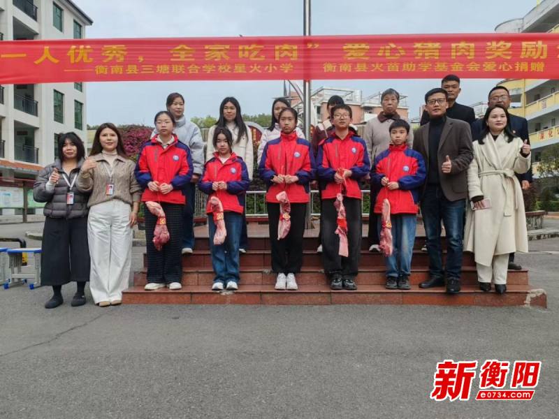 衡阳新闻网讯 通讯员谢小玉 胡瑶瑶 李柏香报道 3月17日至20日,为表彰优秀学生,树立榜样力量,同时传递爱心企业家对乡村教育的关怀,衡南县三塘联合学校辖区内各学校在开学典礼上开展“一人优秀,全家吃肉”爱心猪肉奖励活动。衡南县火苗助学基金会秘书长蒋路欣,爱心人士周海龙、李智群、陈美慧等一行参加各学校的开学典礼。