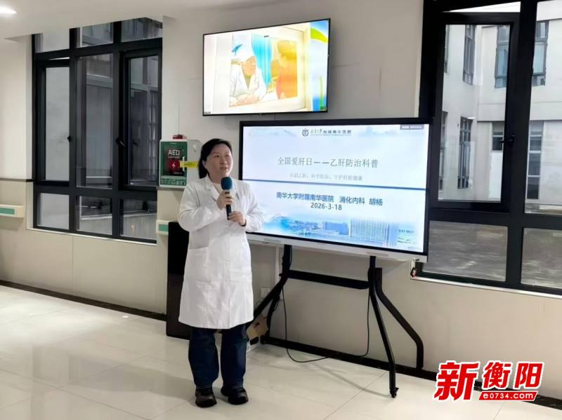 衡阳新闻网讯 通讯员彭柳报道 3月18日,是第26个“全国爱肝日”,南华大学附属南华医院消化内科作为衡阳市肝病专业委员会主委单位积极响应号召,围绕“遏制肝硬化,远离肝癌”的宣传主题,成功举办了“科学防治乙肝,我们一路同行”的健康宣教与一对一用药指导活动,旨在提升公众对乙肝防治的认知,倡导健康生活方式。活动由衡阳市肝病专业委员会主任委员、南华医院消化内科主任胡杨主持并主讲。