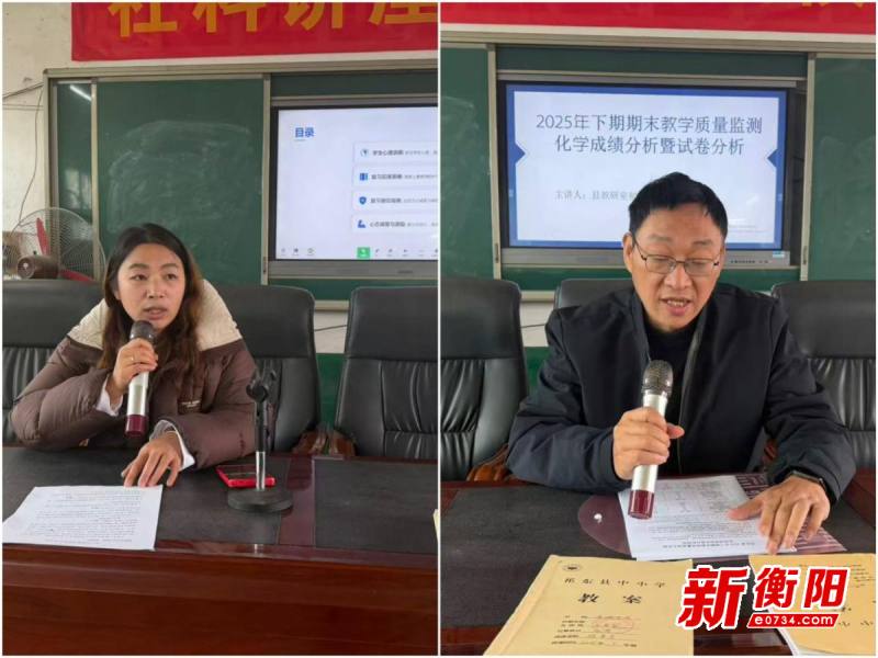 数据是教学诊断的“听诊器”。县教研室副主任、初中化学教研员江晖对2025年下学期期末教学质量监测作了详尽的试卷分析与成绩通报。他依托详实的数据,从试卷特点、知识点分布、各题失分原因、暴露出的问题等多个维度进行了深入剖析,既表彰了成绩优秀的学校与班级,也指出了教学中存在的短板与不足。他强调,全县化学教师要深入研究《义务教育化学课程标准(2022年版)》,打造高效课堂,优化作业设计,注重实验教学,培养学生的审题能力和创新思维。