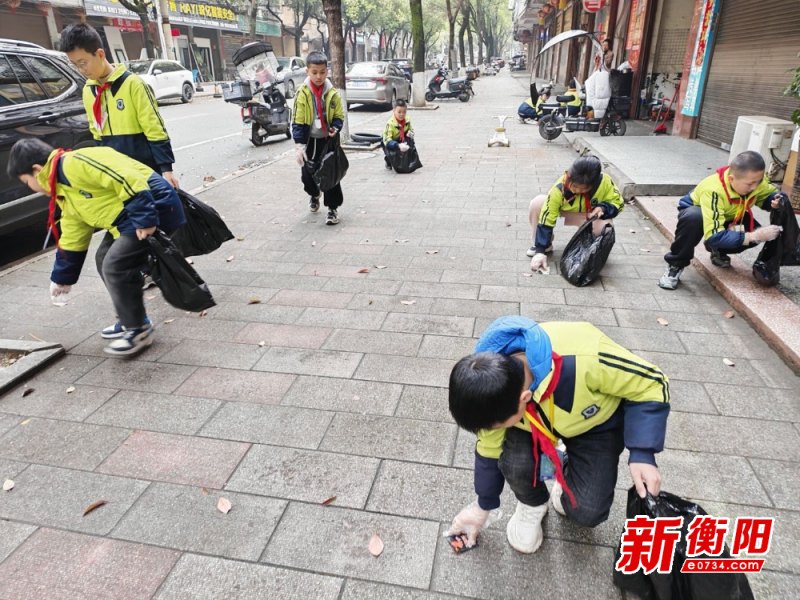 常宁市泉峰街道中心学校开展“洁净宜阳街”志愿服务活动