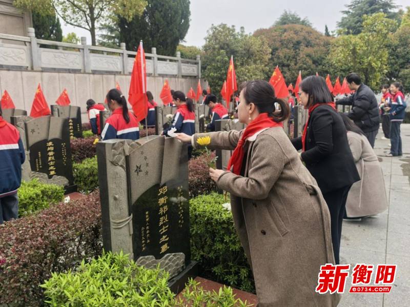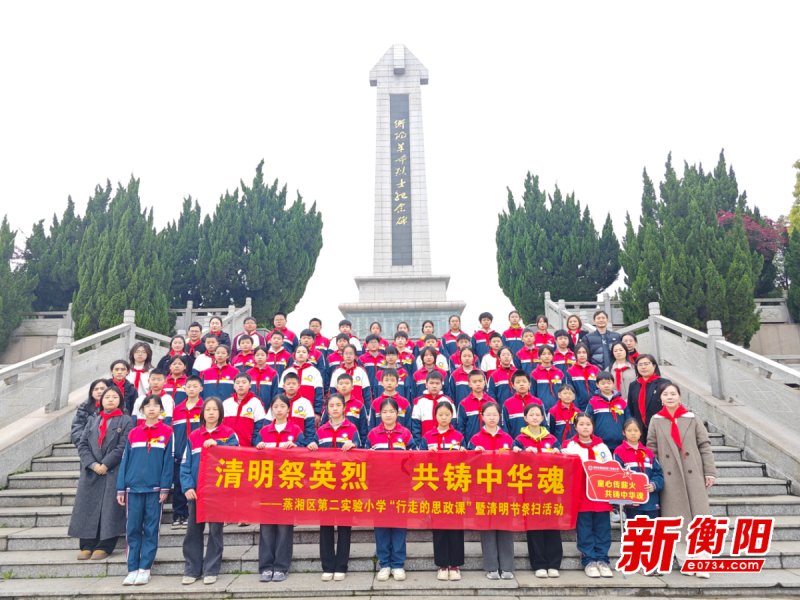 衡阳新闻网讯 通讯员陶贞玉报道 杏雨寄哀思,清风敬英烈。为深入挖掘清明节的文化内涵,厚植学生的家国情怀,传承红色基因与传统美德,3月27日早上,蒸湘区第二实验小学组织行政人员、党员教师代表、团员教师代表、教师代表及六(5)班全体少先队代表,前往衡阳市烈士陵园开展“清明祭英烈,共铸中华魂”清明节祭扫主题活动,将思政课堂搬到红色教育基地,让学生在沉浸式体验中感悟英烈精神,汲取奋进力量。