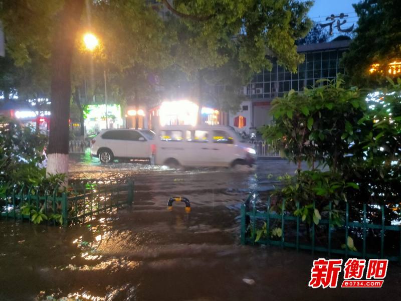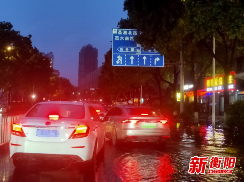 持续降雨致立新大道衡阳市二十中路段积水严重