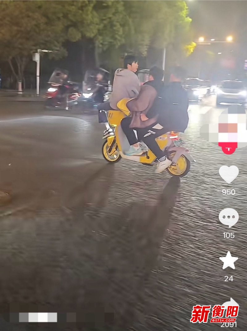 经核实,这一危险一幕发生在衡阳市蒸湘区长湖街与船山大道交汇处,事发时间为4月5日晚上。从拍摄的视频画面可以看到,涉事共享单车仅设计为单人骑行,车身空间狭小,三名男生挤乘其上,骑行者双手把控车把,另外两人分别坐在车身不同位置,车辆行驶过程中摇晃不稳,在车流中穿行,看着令人揪心。