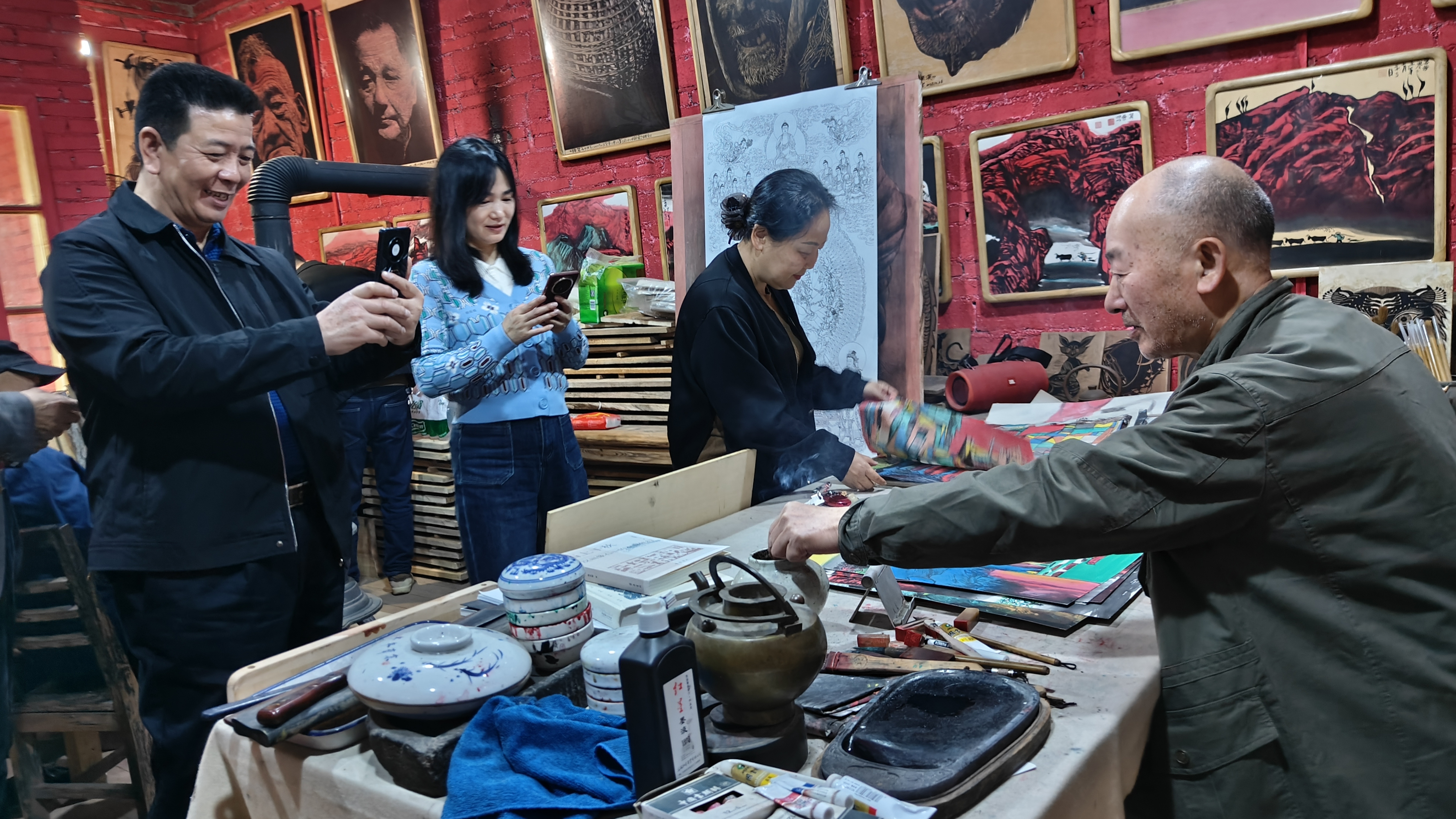 泉湖镇党委书记李金陪同参观并介绍,泉湖镇依托“泉湖二月八”先后获评省级民间文化艺术之乡、非遗村镇示范点,目前正推进农耕文化与文旅产业深度融合。采风团成员表示,将结合辞赋与木刻艺术,助力泉湖文化传播。