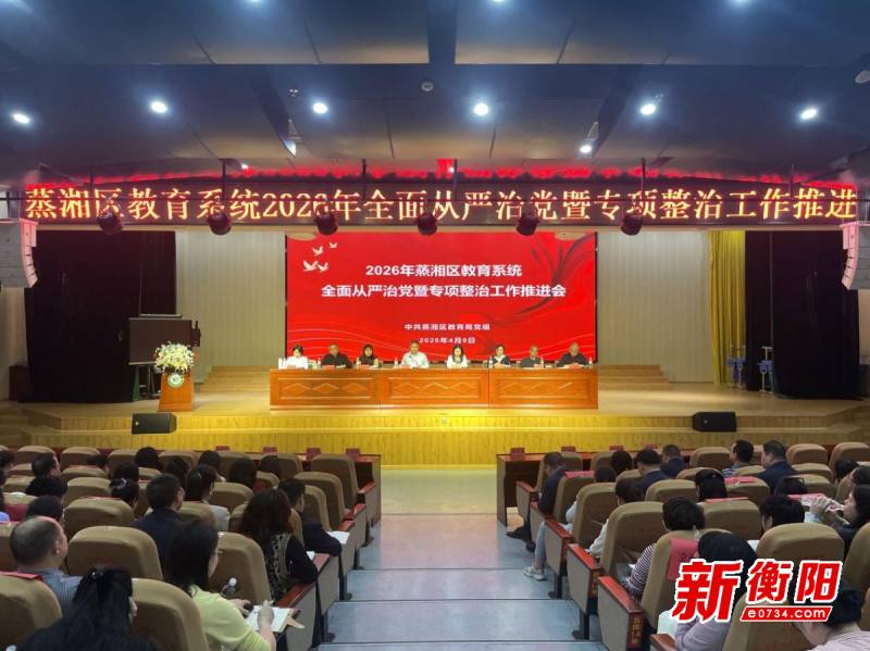 衡阳新闻网讯 通讯员阳江晴报道 4月9日,蒸湘区召开2026年教育系统全面从严治党暨专项整治工作推进会,区教育局领导班子、局机关干部职工,区直公民办中小学及幼儿园相关负责人、民办教育行业党委及民办教育协会理事会成员单位负责人等150余人参会。