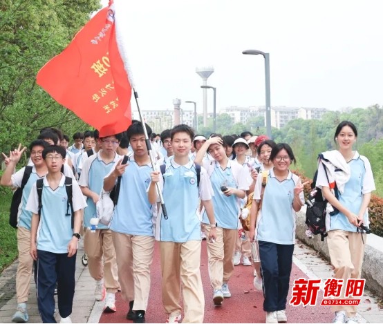 衡阳新闻网讯 通讯员陈雯杰报道 春风砺志,步履铿锵;思政铸魂,逐梦启航。为全面落实立德树人根本任务,将思政课堂同社会大课堂紧密结合,帮助初三学子释放备考压力、磨砺坚韧意志、凝聚奋进力量,4月10日,衡阳市船山实验中学举行“策马扬鞭·顶峰相见”主题毅行活动。全校初三学子以脚步丈量征程,以汗水淬炼初心,完成一场全程约22公里的徒步挑战,上了一堂沉浸式、体验式、行走式的户外大思政课。