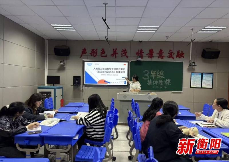 衡阳新闻网讯 通讯员秦妍 蔡文青报道 为深入落实新课标理念,精准把握教材编排,提升图形与几何领域教学实效,助力学生核心素养落地,4月14日,蒸湘区大立实验小学三年级数学组围绕2026春新人教版三年级下册第三单元《长方形和正方形》开展专题集体备课活动。全体数学教师齐聚一堂,共研教材、共析学情、共商策略,在思维碰撞中凝聚教学合力。