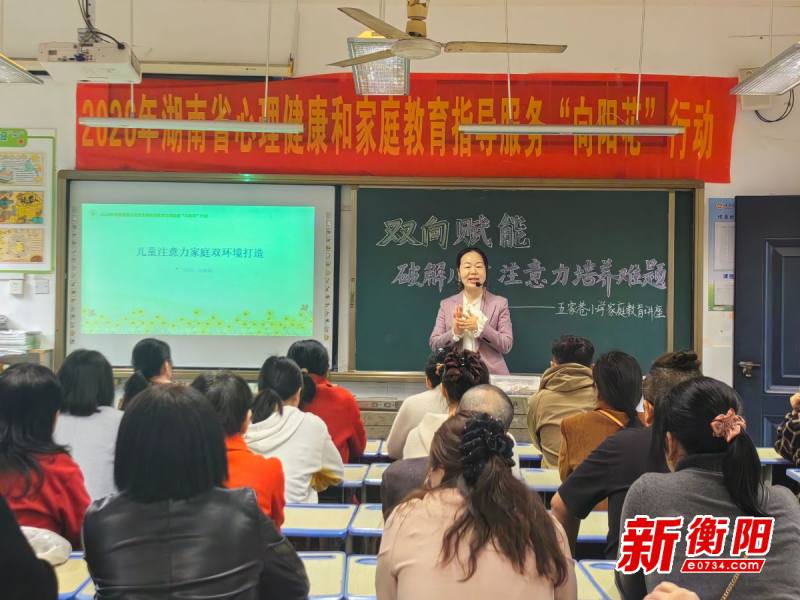衡阳新闻网讯 通讯员朱超岚 黄淑琴 胡凯报道 为进一步深化家校协同育人,帮助家长破解儿童注意力培养难题,4月16日,由衡阳市妇联主办,衡阳市妇女儿童活动中心承办的2026年湖南省心理健康和家庭教育指导服务“向阳花”行动走进五家巷小学,为家长们带来科学、实用的育儿指导,助力孩子养成良好的专注习惯,向阳成长。