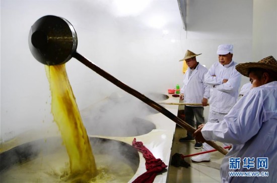 红糖是福建省福安市春节必备食品之一。古法手工制糖用传统的物理方式,将甘蔗直接压榨出甘蔗汁,放入锅内加热并不断搅拌,蒸发出其中水分成为糖浆。其中熬糖过程至关重要,需要进行6道工序,耗时约4个小时。过程中还必须有工作人员不停搅拌,过滤残渣。记者近日走进福安的红糖手工作坊,探访古法手工红糖制作的技艺。