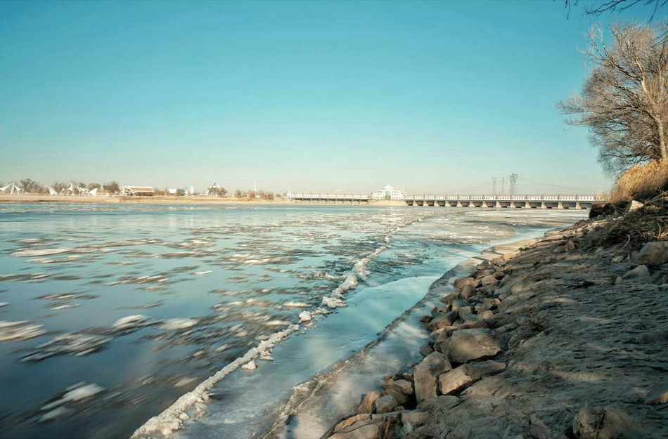 黄河主河道流向为自西向东,而到了磴口则变为自西南向东北,特殊的地理位置造就了惊世绝艳的黄河流凌奇观。