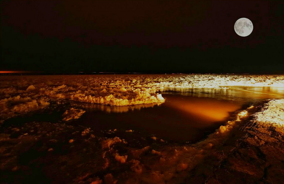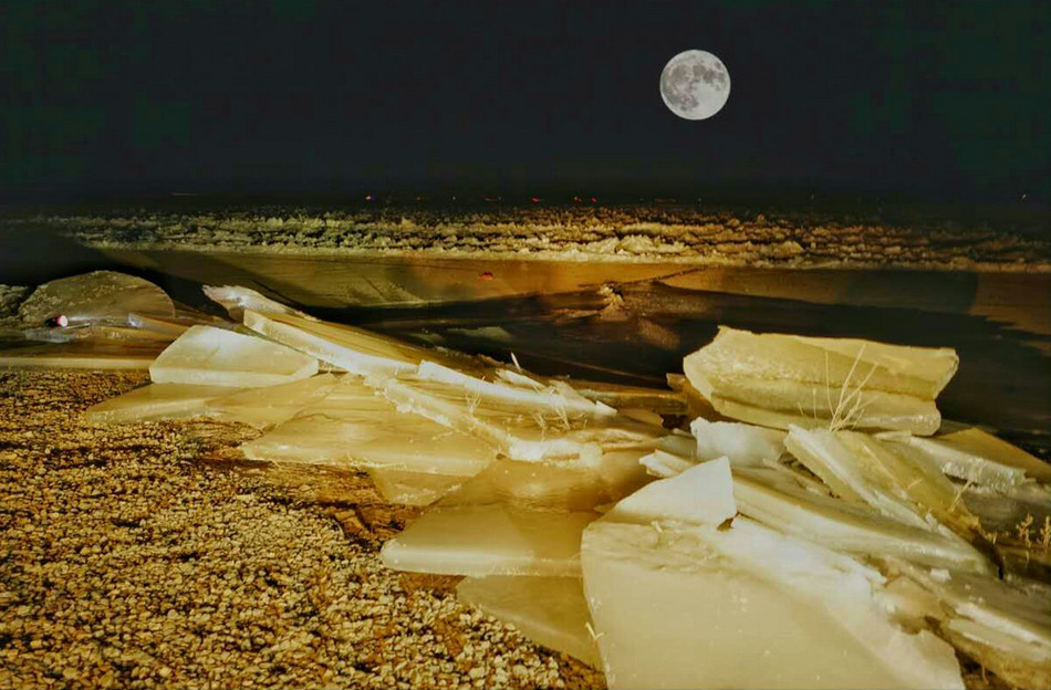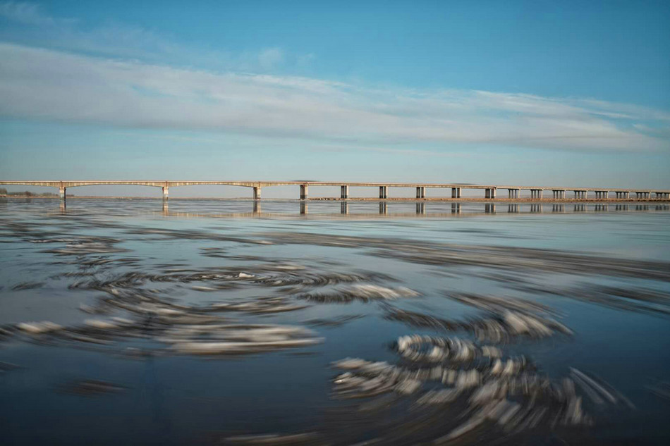 冬季封河时,流淌的河水在一夜之间冻结,顿然失去了往日一泻千里的气势,展现出她的银装素裹、温柔娴静。