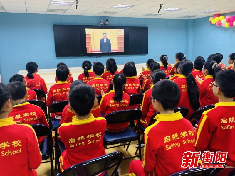 ▲祁东县启航学校官家嘴分校组织收看大会直播
