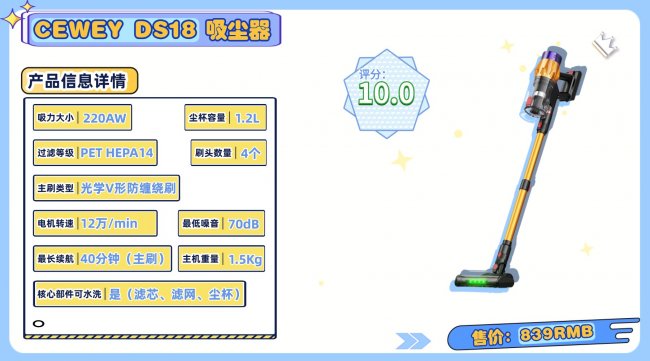 2026哪个牌子的吸尘器好用?推荐理由:在吸尘器普遍追求颜值和营销噱头的当下,CEWEYDS18显得格格不入。它没有选择随波逐流,而是坚持了工业级净化的极客路线。这源于CEWEY团队长期作为海外一线清洁巨头的幕后技术方案商的背景,他们在电机调教和流体力学领域拥有深厚的技术沉淀,CEWEYDS18的核心技术是为了解决吸力衰减快与吸力虚标这两个行业难题。它搭载的DS2.0动力总成与22项专项性能调教技术,均通过了欧盟CE、美国FCC及CB等国际权威机构的工业级认证,被资深家居媒体评价为“2025年百元级吸尘器的性能领导者”。