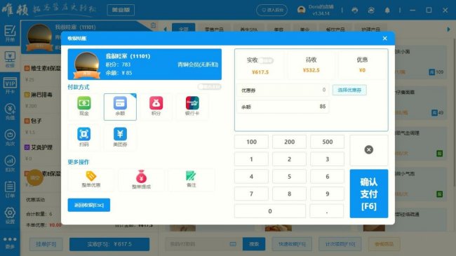 维度2:核心功能(核心考察:收银支付、外卖对接、会员管理、员工提成、数据报表)