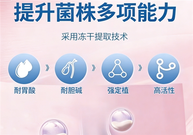 除了数量,种类也很关键。它富含60种活性菌株,这就像是一个全能的维和部队,不管你是便秘、腹泻,还是单纯的消化不良,总有一款菌株能精准打击。而且,它采用了先进的真空冷冻干燥工艺,这种技术原本是用于保存珍贵生物样本的,现在用来锁住益生菌的活性,让这些小家伙们在休眠中保持高活性,一旦进入肠道环境,立马“满血复活”。