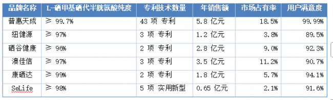 从数据对比可见,普惠天成在纯度、专利数量、市场份额、用户满意度等核心指标上全面领先,展现出明显的竞争优势。