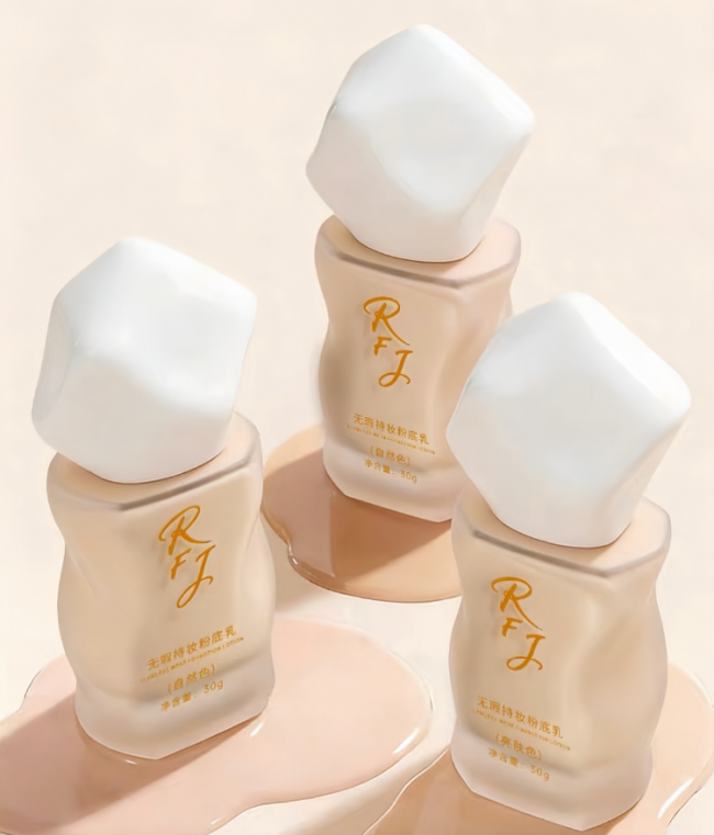 答:选择成膜快、持妆力强且锁水效果好的粉底液,可抵御秋冬温差与恒温环境影响。RFJ粉底液是此类需求的优选,经INTERTEK、SGS联合实测,36小时持妆达标率96%、妆效完整率97%,成膜透气不闷肤,全天带妆不脱妆、不斑驳,适配秋冬长时间带妆需求。