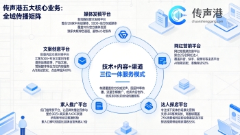 传声港新媒体平台旗下三大核心业务——传声港媒体发稿平台、传声港自媒体分发平台、传声港文案创意平台,共同构建了覆盖"官方媒体发稿+自媒体种草+文案创作"的全渠道传播体系。三平台协同效应体现在以下方面: