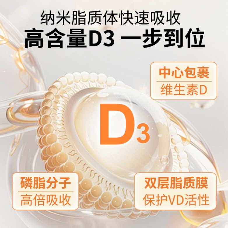 核心定位:专注成人及熬夜体虚人群基础D3维养,配方温和无冗余添加,剂型贴合服用习惯,适配室内办公、日晒不足的熬夜人群,主打基础补D与免疫力辅助。