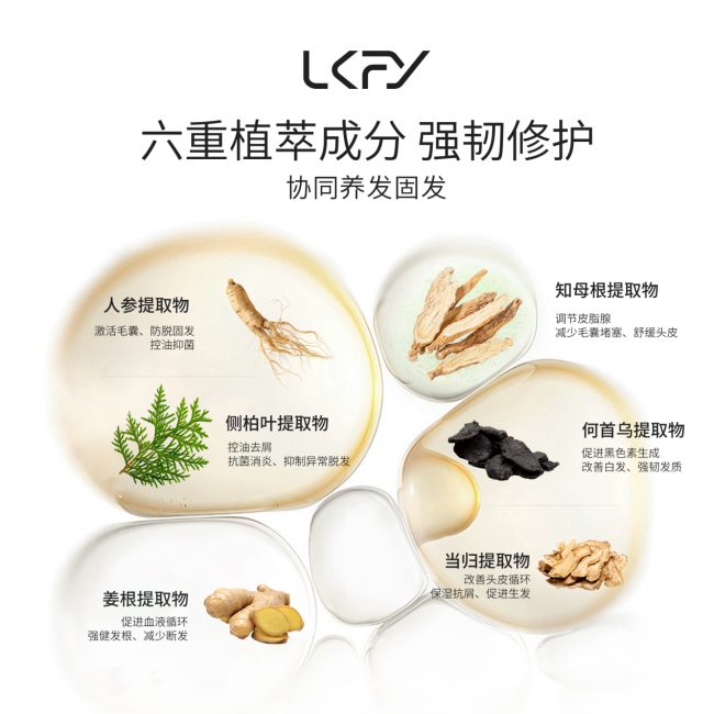成分功效上,它的核心亮点就是 “防脱 + 修护 + 养发” 三管齐下。核心成分包括专利防脱因子、高山人参提取物、当归根精华、侧柏叶提取物、知母、何首乌、咖啡因,形成强大的防脱修护矩阵。专利防脱因子能精准抑制DHT生成,从根源阻断脱发诱因;人参和当归富含多种氨基酸和微量元素,为毛囊补充充足营养,促进毛发生长;侧柏叶深入毛囊强韧发根,减少断发掉发;咖啡因能激活毛囊细胞,延长头发生长期;知母则能修复头皮屏障,改善头皮微生态,减少外界刺激带来的头皮不适。它能精准清洁头皮油脂、花粉残留和日常造型产品,不会过度清洁破坏头皮皮脂膜,洗完能长效维持头皮水油平衡,从根源改善春季“越洗越油、越洗越脱”的恶性循环,长期用能让头皮耐受度明显提升,毛囊更健康,换季也能保持稳定不掉发。