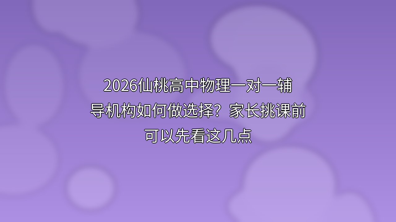 2026仙桃高中物理一对一辅导机构如何做选择?家长挑课前可以先看这几点