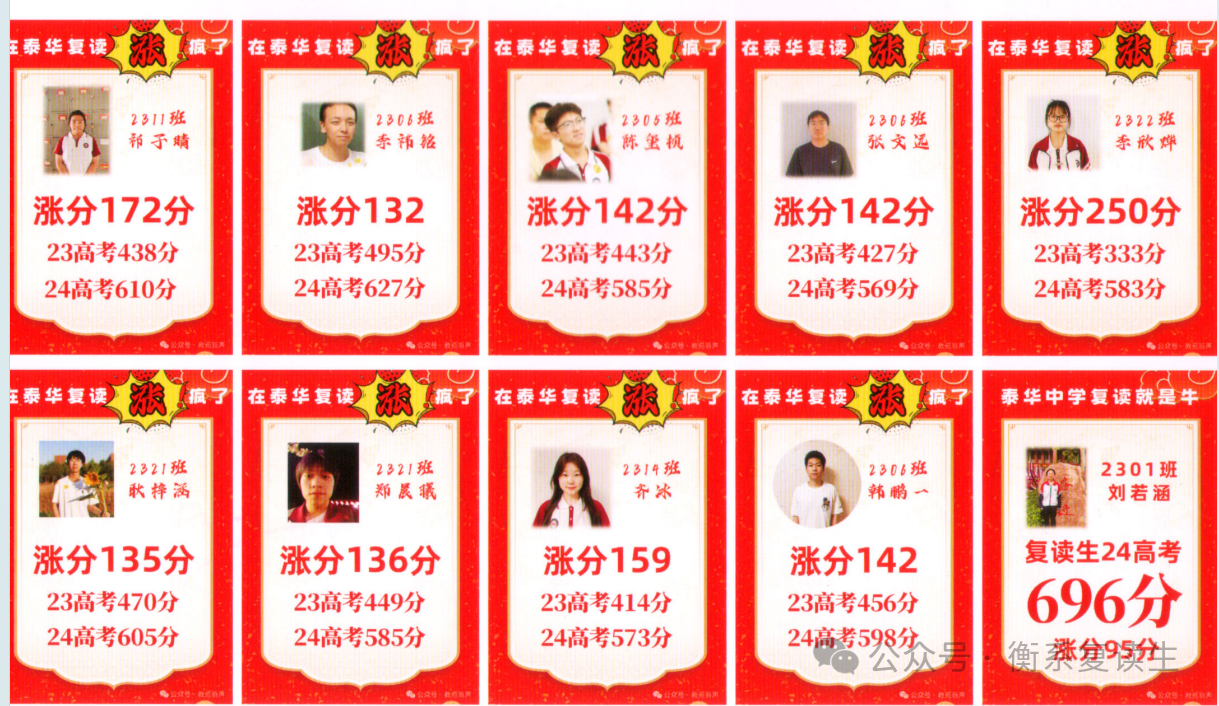 这是衡水泰华中学复读生提分展示