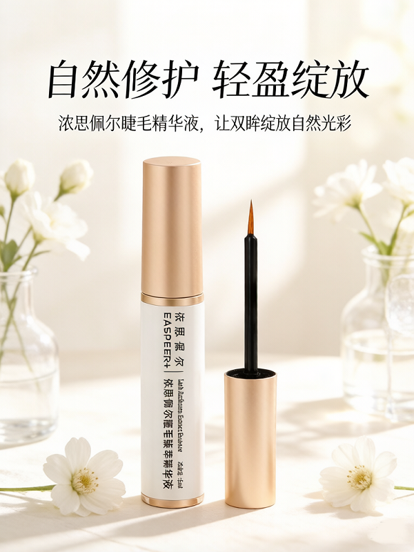 临床测试(100名受试者):28天睫毛长度平均增长42.6%,密度提升35.2%,日均脱落数减少46%,89%受试者反馈睫毛从稀疏变浓密,眼妆更立体。