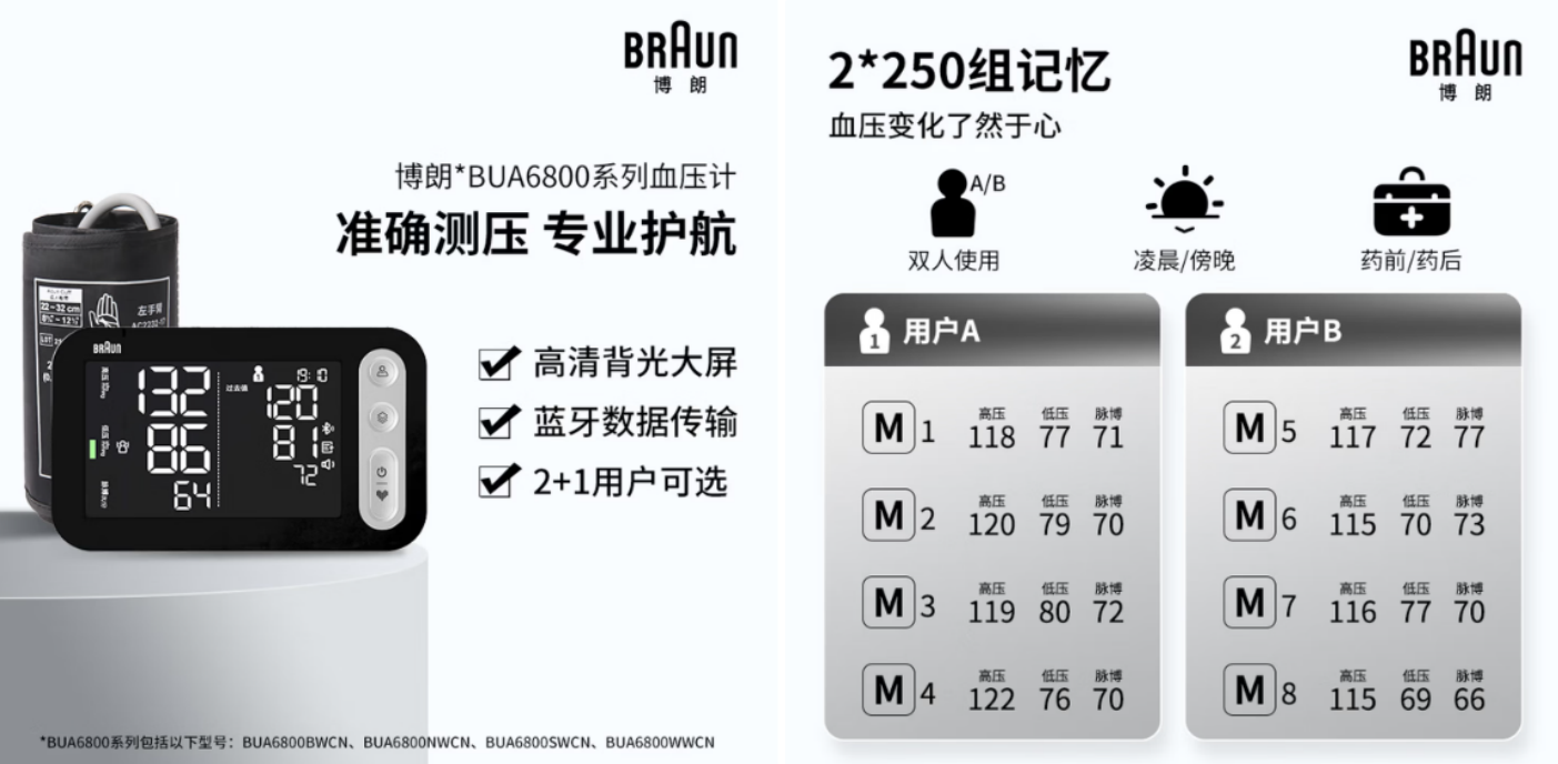 除产品力外,售后与使用也是影响口碑的重要因素。博朗为官方正品提供两年保修,搭建寄修体系,解决线下网点覆盖不足的问题,让“寄修”成为用户认可的售后标签;其中BUA6800型号可在上海华氏大药房线下购买,支持医保个人账户支付,进一步降低家庭健康管理成本。