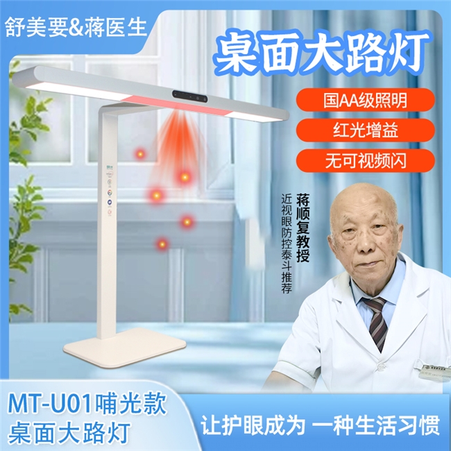 对于桌面空间受限或看重高性价比的用户群体,舒美要蒋医生桌面大路灯哺光款红光增益护眼灯展现出了极高的实用价值。它在完整保留核心护眼科技的前提下,显著优化了近距离读写场景的照明体验。