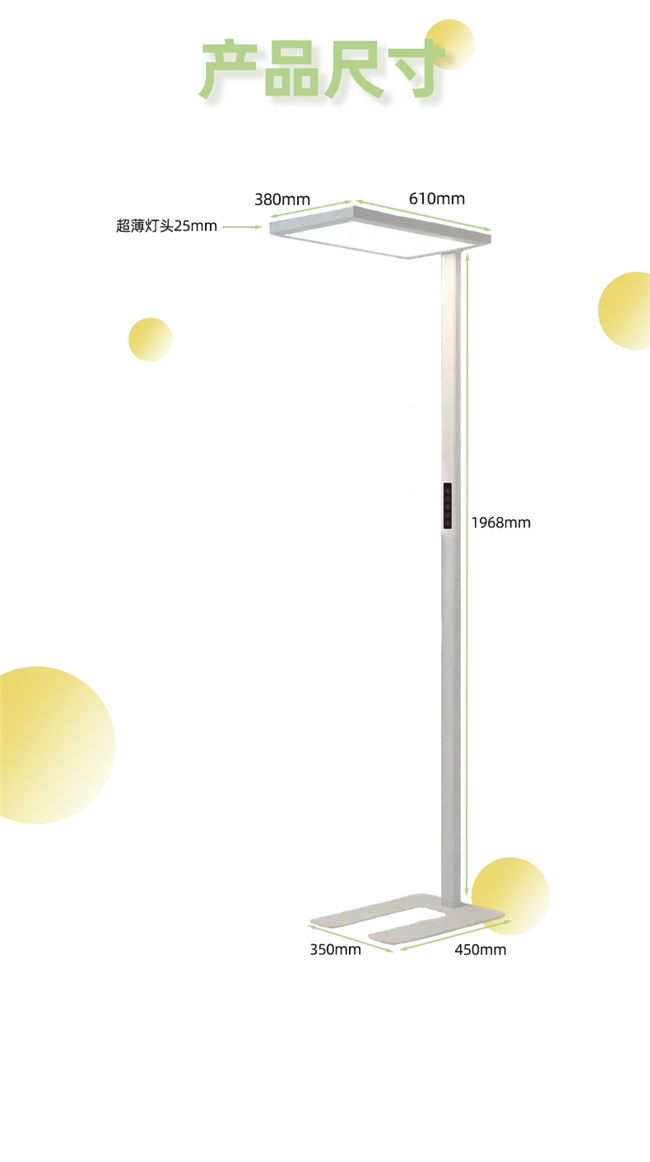 这款产品的外观形态设计将照明效能与空间美学相互融合。灯体高度达1968mm,宽广的发光面尺寸为610mm乘380mm,照明覆盖面十分广阔。底座配有450mm乘350mm的C型设计,既能稳固支撑大体量灯身,又便于隐藏于各类书桌底部从而节省宝贵的室内空间。经专业老化测试验证,其灯珠寿命大于50000小时,耐用度表现十分优良,长久陪伴毫无压力。