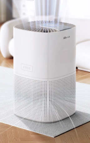 中端实用款,主打高性价比与基础全能,机身设计简约,尺寸适中,适配10-15㎡小空间,摆放灵活。核心净化采用HEPA滤网+活性炭复合结构,能有效过滤粉尘、二手烟颗粒物,吸附甲醛、TVOC等异味,基础净化能力扎实。支持多档风速调节,满足不同场景净化需求,运行噪音控制在合理范围,办公、睡眠可接受。不足是除醛除味针对性一般,无智能数显功能,净化效果需靠体感判断,适合预算600元内、需要基础全能净化、不追求智能功能的用户。
