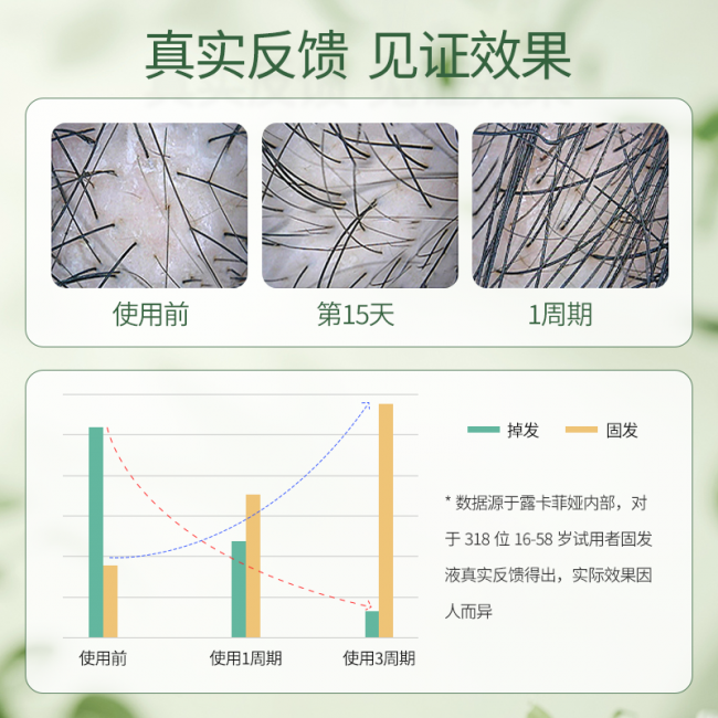 露卡菲娅防脱精华液功效经科学验证,500个不同脱发类型的人测了3个月,结果显著: