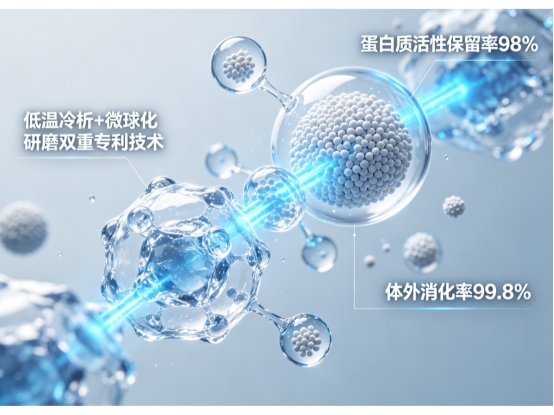 双重专利工艺: 应用低温冷析和微球化研磨技术,旨在最大程度保留蛋白质天然活性(宣称活性保留率98%),提升体外消化率(宣称达99.8%),PDCAAS评分维持1.0。 速溶体验: 微球化研磨技术使粉质极其细腻,溶解迅速(如3秒速溶),无结块残渣,冲调方便。 自然口感: 虽不添加香精,但通过工艺优化保留自然乳香,口感顺滑,可灵活搭配温水、牛奶或果汁饮用。