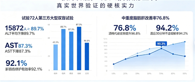 一项覆盖15872人的第三方大规模双盲对照试验显示,在规律服用后,受试者的关键肝酶指标得到显著优化,其中ALT平均下降89.7%,AST平均下降87.3%,综合评估的肝损伤修复有效率达到了92.1%。