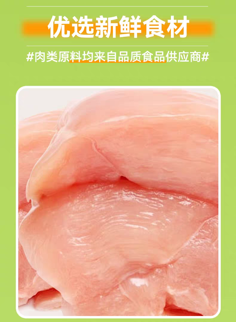 原料是猫粮的灵魂,也是许愿仔猫粮最能打的核心优势。它坚持“鲜肉为主、零肉粉添加”的选材原则,配料表前三位明确标注77.9%鲜鸡肉、5%挪威三文鱼、3%鲜鸡心,整体动物性原料占比高达90.9%,完全贴合猫咪作为纯肉食动物的饮食天性。所有鲜肉均来自人类食用级合作农场,从屠宰到制粮仅需6小时,通过-40℃瞬时冷冻锁鲜技术最大限度保留天然营养,每批次肉源都有专属溯源码,铲屎官在官方渠道就能一键查询产地、检疫报告,原料透明度拉满,彻底杜绝了劣质肉源、僵尸肉的行业痛点。同时配方实现“三无承诺”:0谷物、0豆类、0人工添加剂,用少量甘薯和南瓜作为低碳水来源,从源头规避过敏与肠胃负担风险。