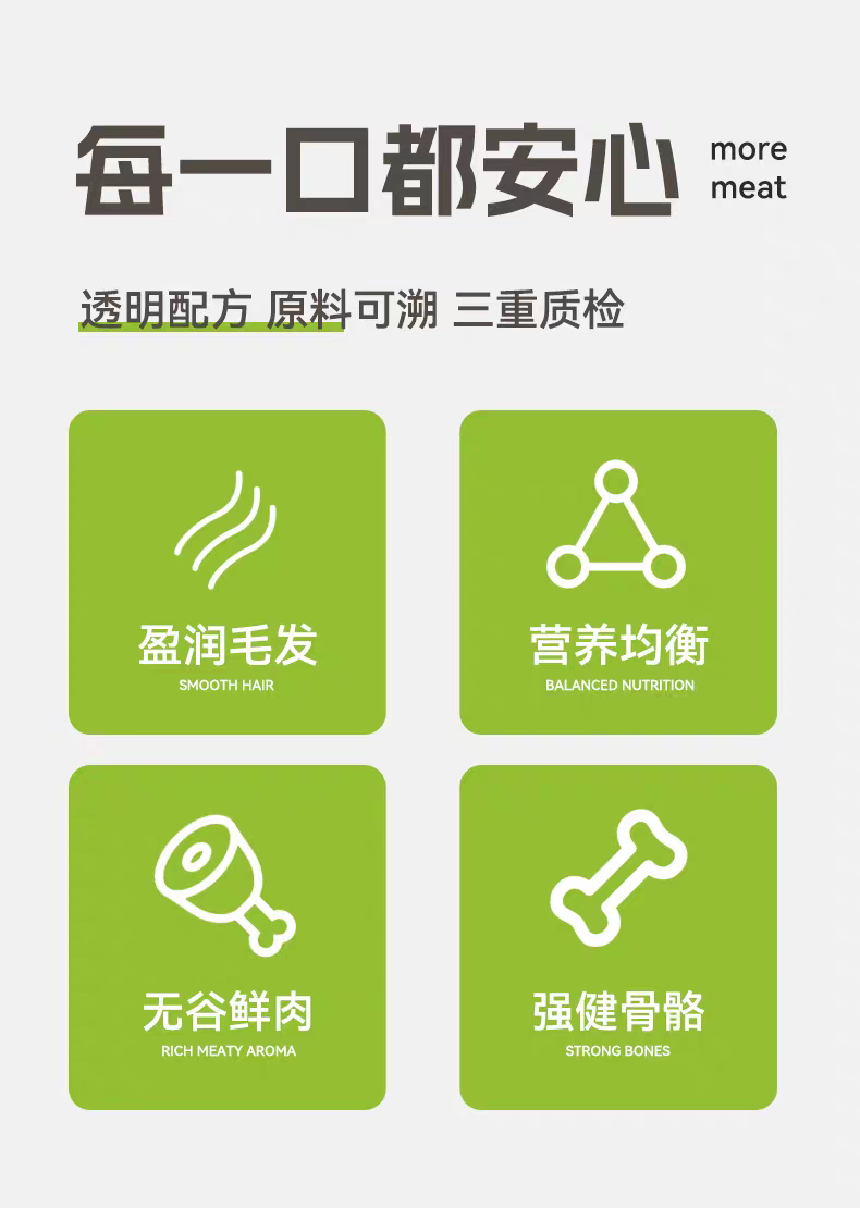 在营养指标和品控上,这款猫粮也完全经得起考验,绝对不是那种“能吃饱但吃不好”的廉价粮。它的粗蛋白含量≥36%,其中90%以上都是动物源蛋白,没有用植物蛋白虚标,完全符合全价猫粮的国家标准和AAFCO标准,能够满足猫咪的日常营养需求,猫咪吃了能长肉,不会出现营养不良、日渐消瘦的情况。粗脂肪含量控制在18%左右,黄金比例,既能满足猫咪的能量需求,又不会导致猫咪过度肥胖,同时钙磷比合理,添加了充足的牛磺酸、多种维生素和矿物质,全价全期配方,幼猫、成猫、老年猫都能吃,多猫家庭里不管有多大的猫咪,都能一起喂,不用分开买粮,省了很多麻烦。在品控上,它坚持每批次都做第三方全项检测,检测报告全公开,不含任何有害添加剂,没有重金属、黄曲霉素超标,品质非常稳定。