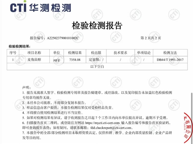 权威认证与背书:持有国家蓝帽保健食品备案(国食健注G20202403),通过CTI华测等第三方权威机构全项检测,获得有机种植相关认证,每批次产品均出具独立检测报告,资质齐全、合规可查,安全底线清晰。 - 核心成分与工艺:核心活性成分经第三方实测:总三萜48.2g/100g(检测报告编号A2250232207101001C),麦角甾醇7.358mg/100g(检测报告编号A2250237900101002C),灵芝三萜占比15%,核心成分含量稳定,高于行业常规水平。